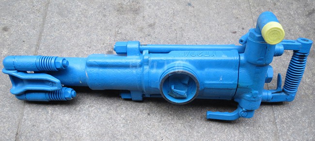 YT24型氣腿式鑿巖機(jī),是一種新型高效的鑿巖機(jī)械。廣泛應(yīng)用于礦山巷道掘進(jìn)及各種鑿巖作業(yè)中鑿巖爆破,是冶金、煤炭、鐵路、交通、水利建設(shè)及國防石方工程不可缺少的重要機(jī)具。YT24型鑿巖機(jī)的適用范圍較廣,最適用于在中硬或堅(jiān)硬(f=8-18)巖石上鑿巖水平和傾斜炮孔,也可垂直向上鑿頂板上的錨桿孔。炮孔直徑一般為34-42毫米,有效經(jīng)濟(jì)的鉆孔深度可達(dá)5米。本機(jī)即可以根據(jù)巷道斷面大小與FT140BD型短氣腿或FT140BC型長氣腿配套使用,也可以裝在鉆車或鉆架上工作。