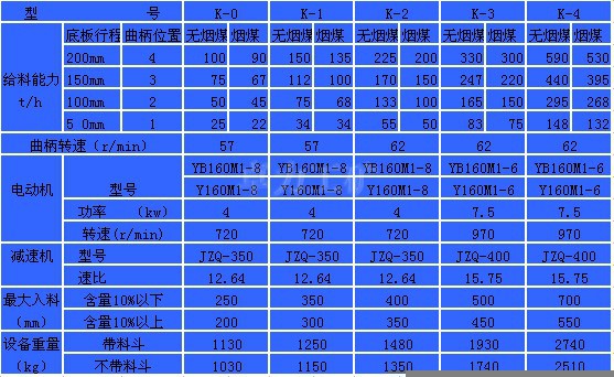 K型往復(fù)式給煤機技術(shù)參數(shù)表