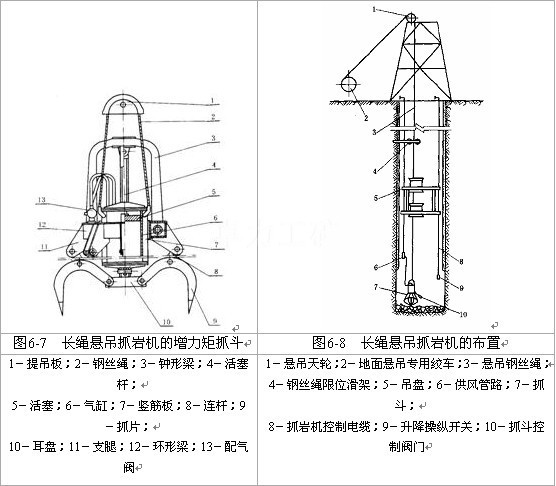 為了安全,地面可增設(shè)鑿井絞車,以便對抓巖機(jī)進(jìn)行輔助懸吊,通??膳c傘鉆適用一臺懸吊絞車。
