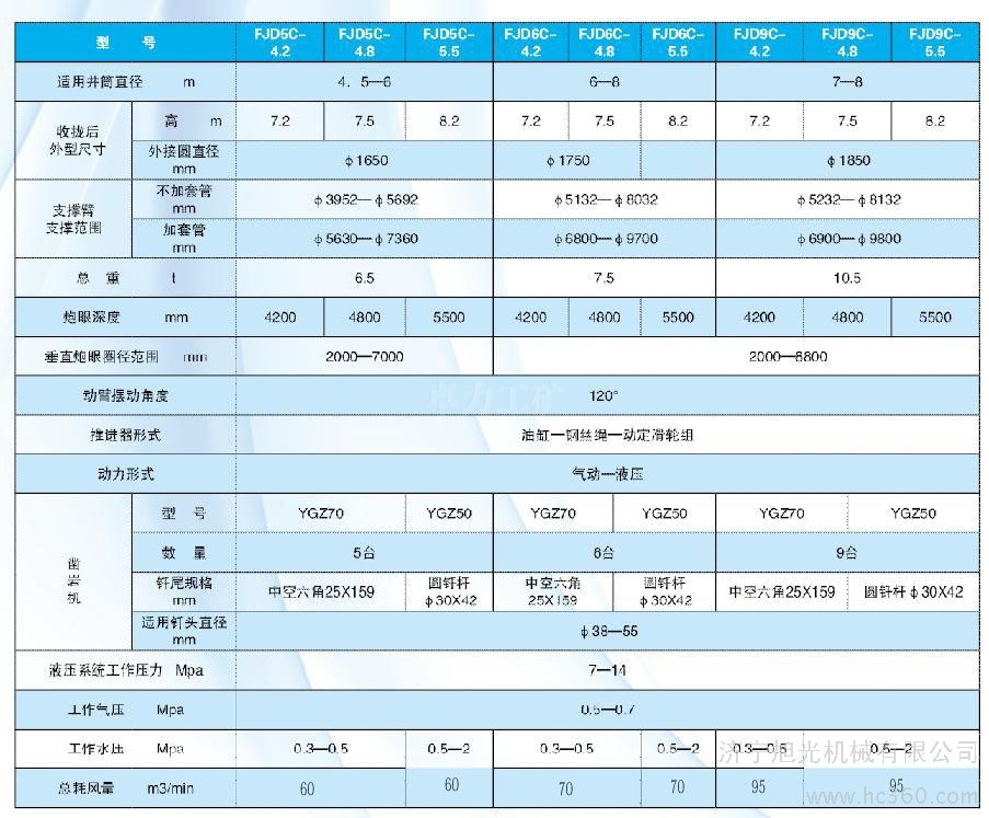 3、 工作范圍大,F(xiàn)JD傘形鉆機(jī)適用于從4.5米至8米的小、中型井筒。大至8米以上的井筒均能施工。