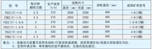 公司擁有多年液壓翻車機生產(chǎn)經(jīng)驗,質(zhì)量可靠,價格優(yōu)惠.熱線:18953724511 / 18605374511翻車機又名翻罐籠,其主要規(guī)格為:FDZ(B)Z(Y)-1(1.5)/6(9)。它是礦山和煤礦使用固定式礦車運輸中轉(zhuǎn)的主要卸料設(shè)備,具有生產(chǎn)效率高、使用簡單、安全可靠等特點!產(chǎn)品優(yōu)···