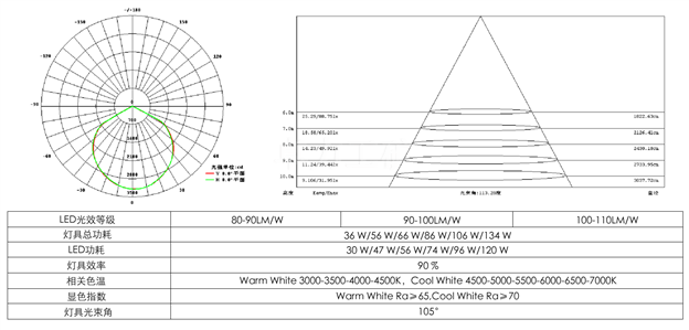 高光效進(jìn)口LED芯片,專(zhuān)利技術(shù)集成封裝,LED光效最高可達(dá)到120LM/W。