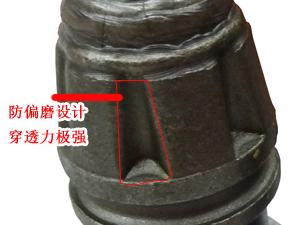 優(yōu)勢五: 錐形齒體設計, 胎體梯形流水槽防磨偏設計, 穿透能力極強。 |