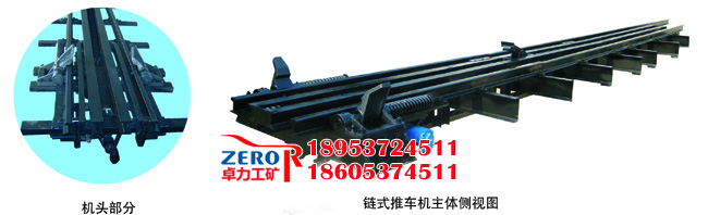 鏈式推車機多安裝于立井井口、平巷和小坡度運輸巷,實現(xiàn)短距離的推拉礦車的功能。