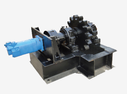 (1)銷齒式推車機由一列可以在軌道上運行的銷車組成,整套裝置采用液壓動力,由低速大扭矩液壓馬達直接驅(qū)動齒輪轉(zhuǎn)動,再通過齒輪傳動來實現(xiàn)銷車的運行。