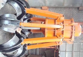 立井抓巖機(jī)[豎井抓渣機(jī)]的懸臂(或稱轉(zhuǎn)臂)懸吊分瓣式抓斗,繞吊盤中心360°回轉(zhuǎn),抓取開采豎井過程中暴破產(chǎn)生的井底工作面的巖石渣土,裝入專用吊桶內(nèi),直接提升到地面運(yùn)輸系統(tǒng)除渣。適用于凈直徑
